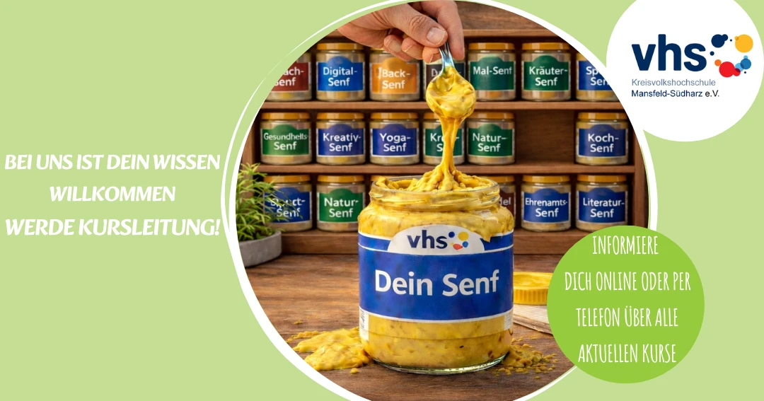 Wir, der gemeinnützige Verein Kreisvolkshochschule Mansfeld-Südharz, sind Dein Partner für das lebenslange Lernen. Die Volkshochschule der Region fördert das individuelle Lernen im Rahmen eines vielfältigen Kursangebotes und unterstützt dabei den Dialog zwischen den Generationen, sozialen Milieus und Kulturen.